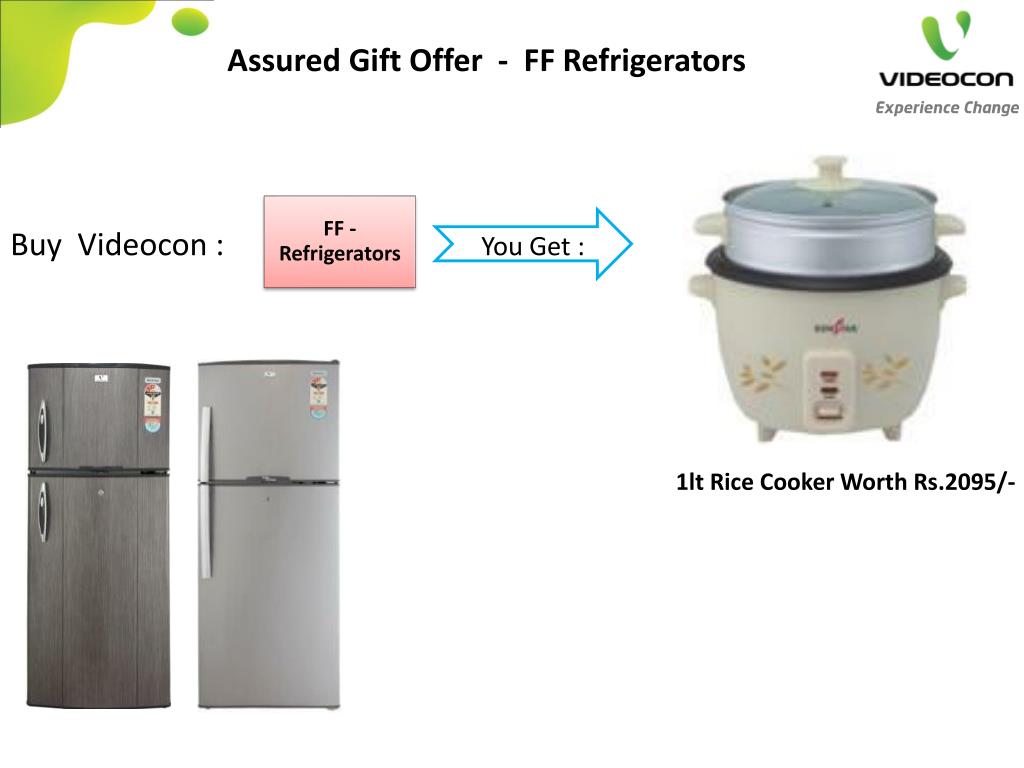 Assured Gift Offer - FF Refrigerators Buy Videocon : You Get : 1lt Rice Cooker Worth Rs.2095/-