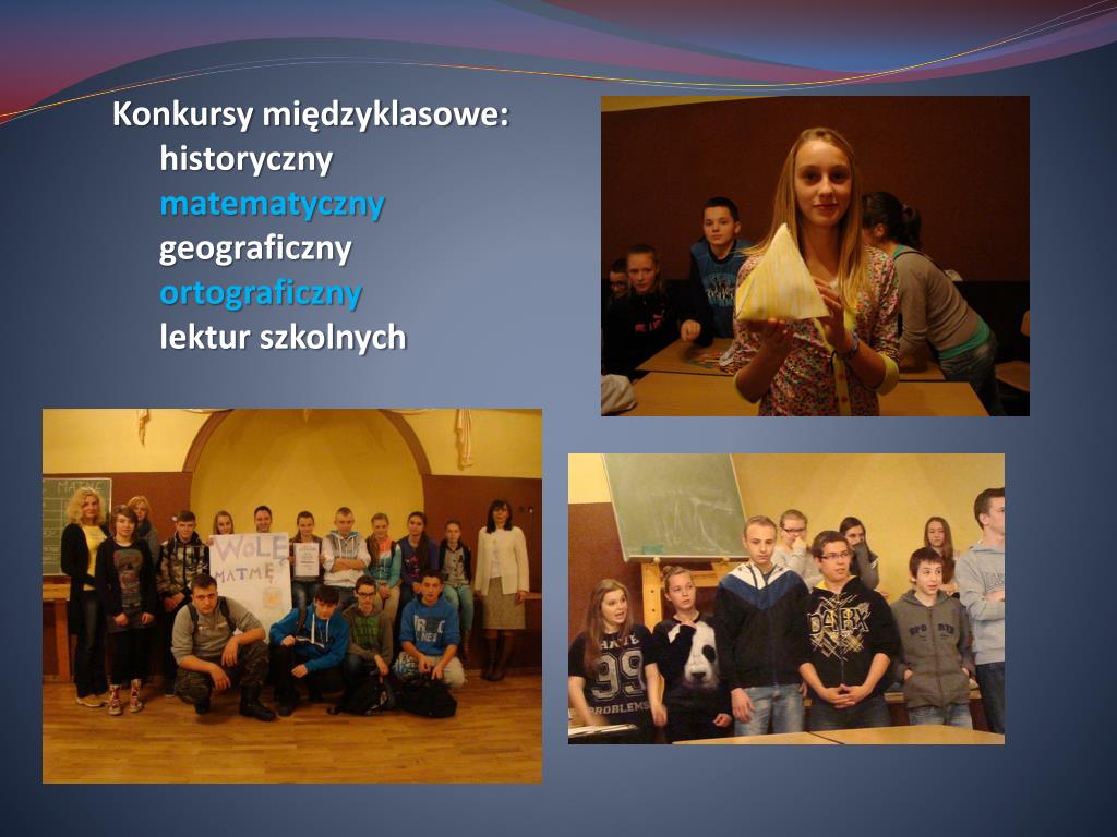 Konkursy międzyklasowe: • historyczny • matematyczny • geograficzny • ortograficzny • lektur szkolnych