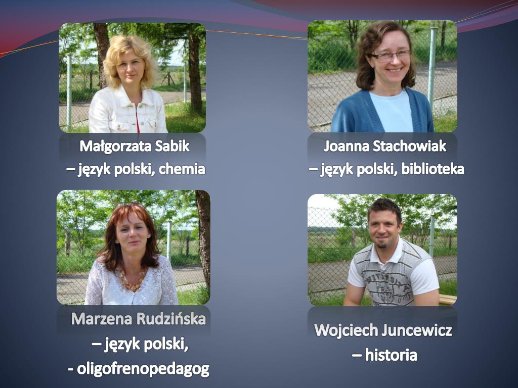 Joanna Stachowiak – język polski, biblioteka Małgorzata Sabik – język polski, chemia Wojciech Juncewicz – historia Marzena Rudzińska – język polski, - oligofrenopedagog
