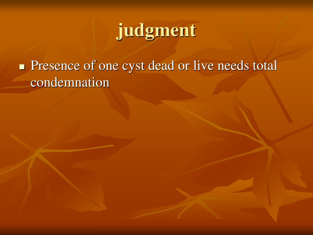 judgment • Presence of one cyst dead or live needs total condemnation