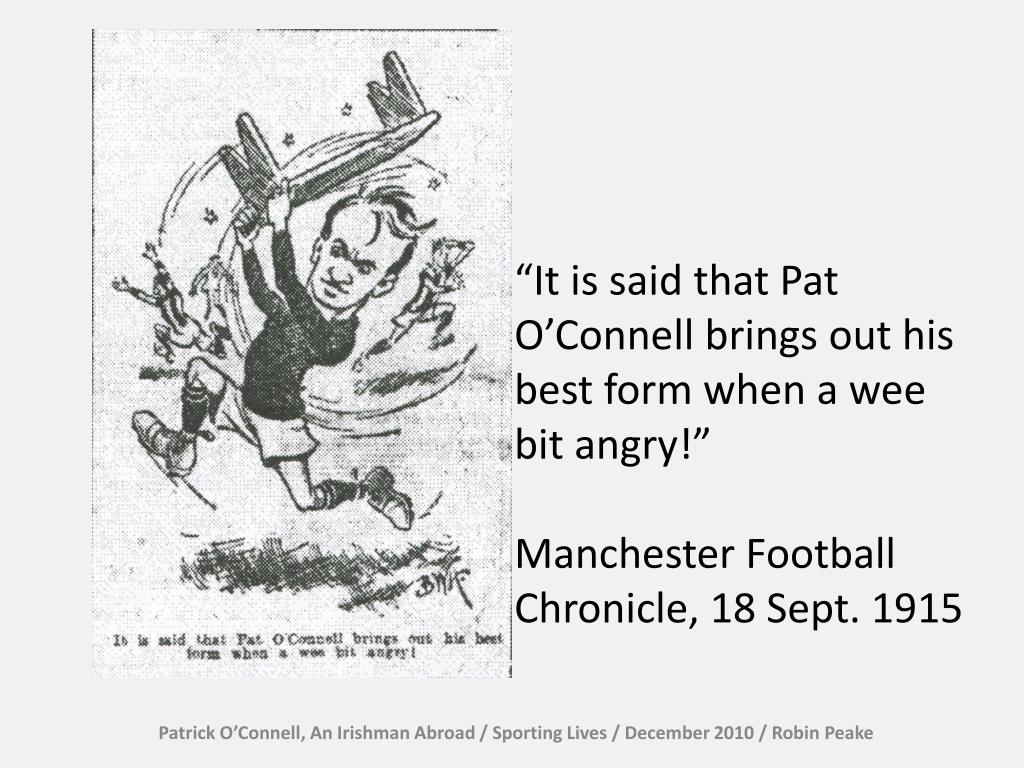 “It is said that Pat O’Connell brings out his best form when a wee bit angry!” Manchester Football Chronicle, 18 Sept. 1915 Patrick O’Connell, An Irishman Abroad / Sporting Lives / December 2010 / Robin Peake