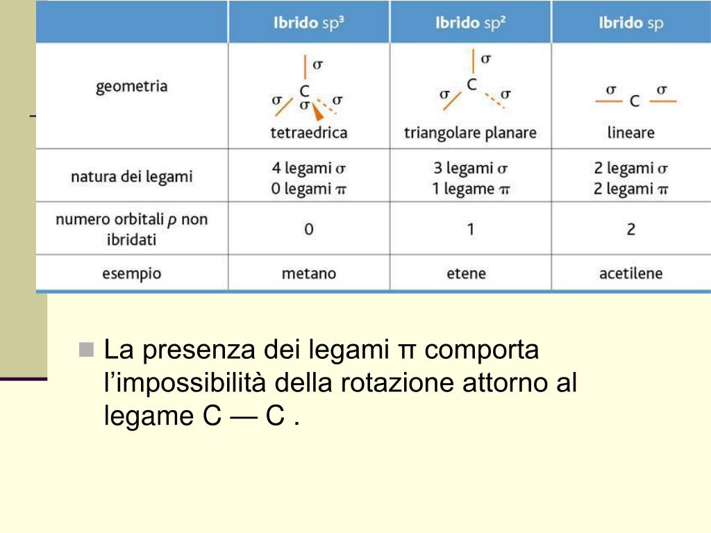 La presenza dei legami π comporta l’impossibilità della rotazione attorno al legame C — C .