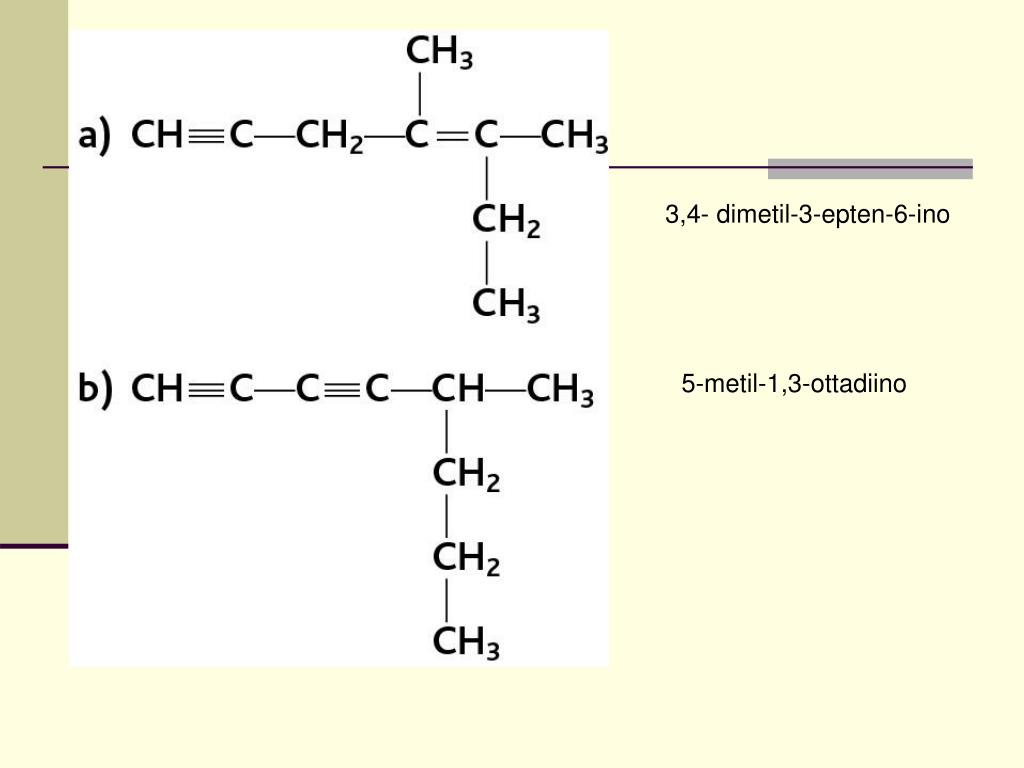 4-etil-5-metil-2-propil-1-esene. 2,3-dietil-1,4-pentadiene 2-metil-1-buten-3-ino