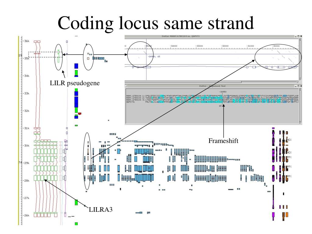 Coding locus same strand LILR pseudogene Frameshift LILRA3