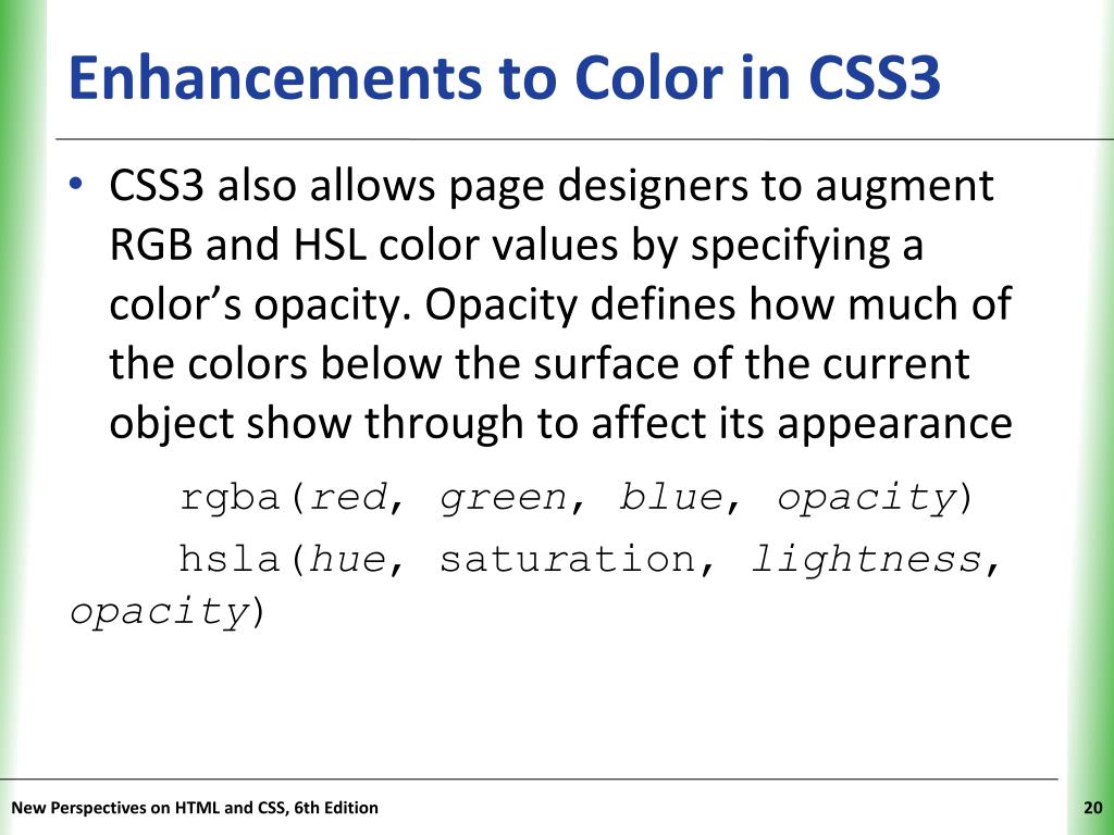 Enhancements to Color in CSS3 New Perspectives on HTML and CSS, 6th Edition