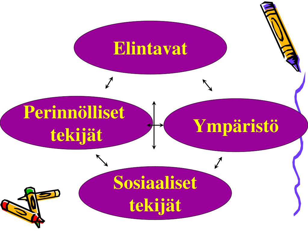 Elintavat Perinnölliset tekijät Ympäristö Sosiaaliset tekijät