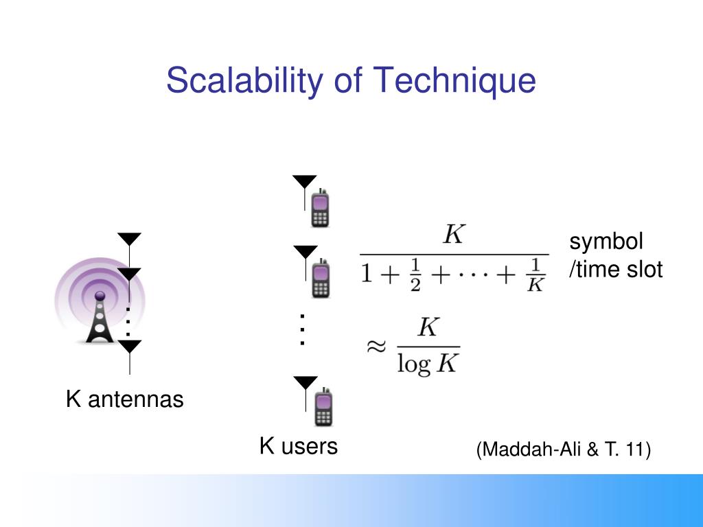 Scalability of Technique symbol/time slot K antennas K users (Maddah-Ali & T. 11)