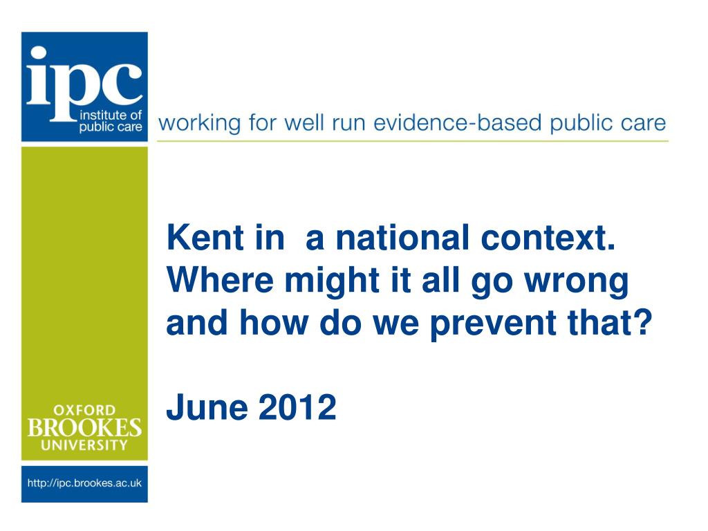 Kent in a national context. Where might it all go wrong and how do we prevent that? June 2012. About IPC. We work for well run evidence based public care We are part of Oxford Brookes University We work with national and local government, the NHS and private, community and voluntary sectors