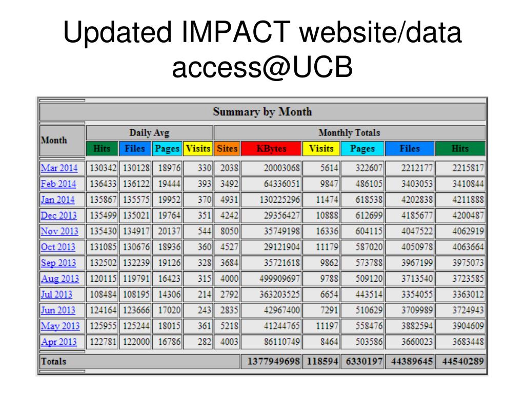 IMPACT Data Report SWG March 2014 From Peter Schroeder, with inputs from the IMPACT Team