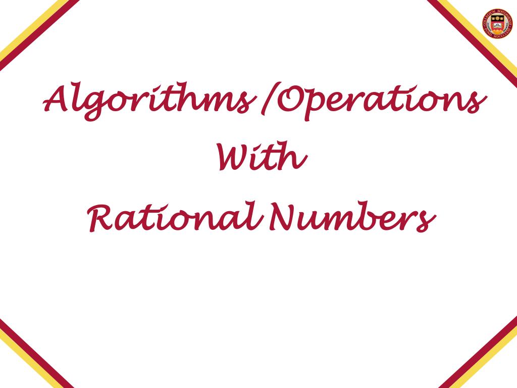 Key relation for Rational numbers Equality Given: a /b=c /d if and only if ad = bc