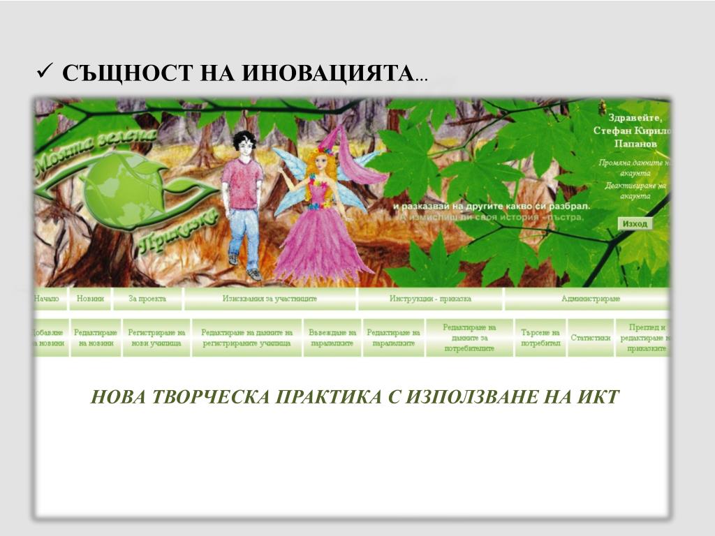 СЪЩНОСТ НА ИНОВАЦИЯТА... НОВА ТВОРЧЕСКА ПРАКТИКА С ИЗПОЛЗВАНЕ НА ИКТ