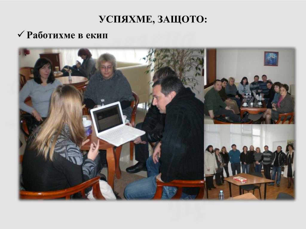 УСПЯХМЕ, ЗАЩОТО: • Работихме в екип