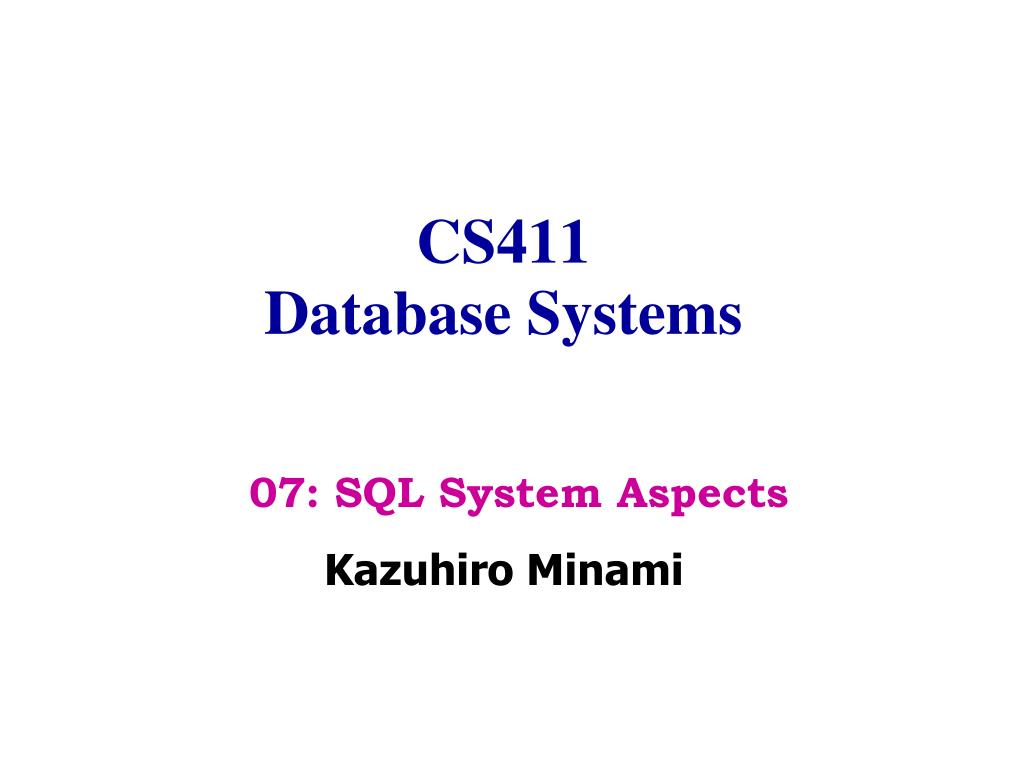 CS411Database Systems Kazuhiro Minami 07: SQL System Aspects