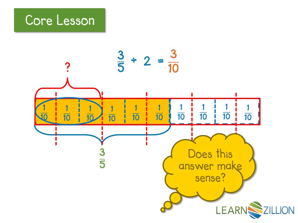 Is it possible to divide a fraction by a whole number? Does fraction division work like whole number division? I wonder… _ 3?