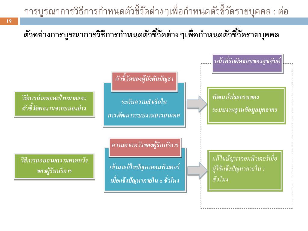 การบูรณาการวิธีการกำหนดตัวชี้วัดต่างๆเพื่อกำหนดตัวชี้วัดรายบุคคล : ต่อ
