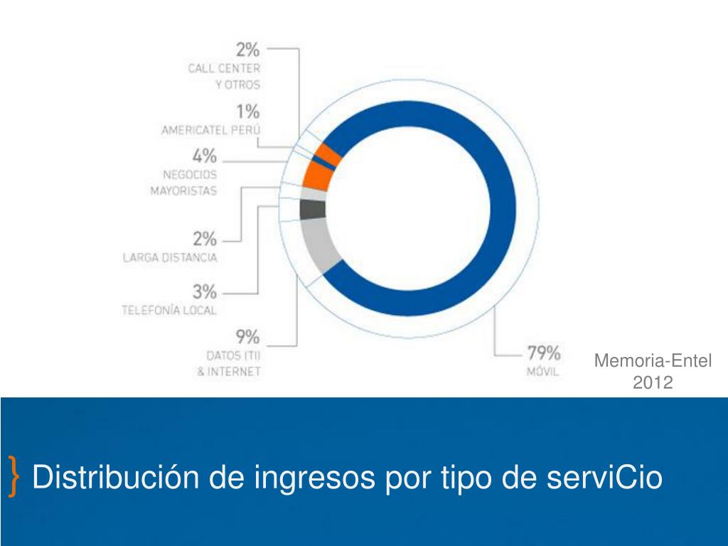 Memoria-Entel 2012 } Distribución de ingresos por tipo de serviCio