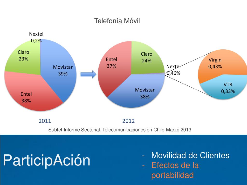 TelefoníaMóvil 2011 2012 Subtel-Informe Sectorial: Telecomunicaciones en Chile-Marzo 2013 ParticipAción • Movilidad de Clientes • Efectos de la portabilidad