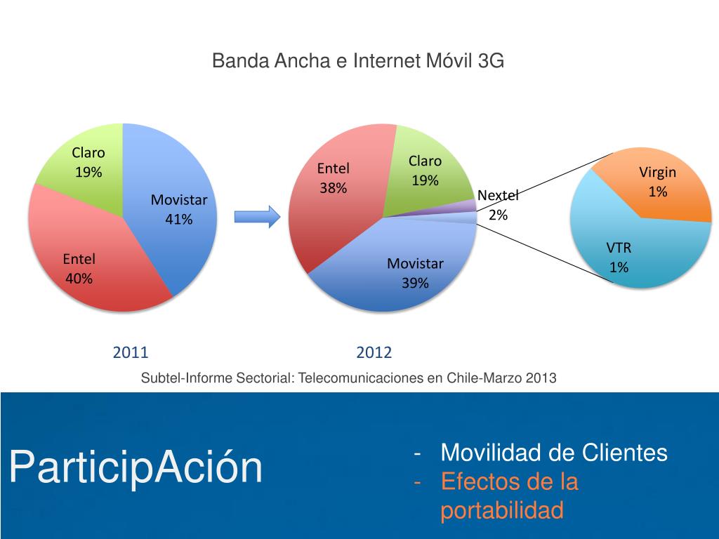 Banda Anchae Internet Móvil 3G 2011 2012 Subtel-Informe Sectorial: Telecomunicaciones en Chile-Marzo 2013 ParticipAción • Movilidad de Clientes • Efectos de la portabilidad