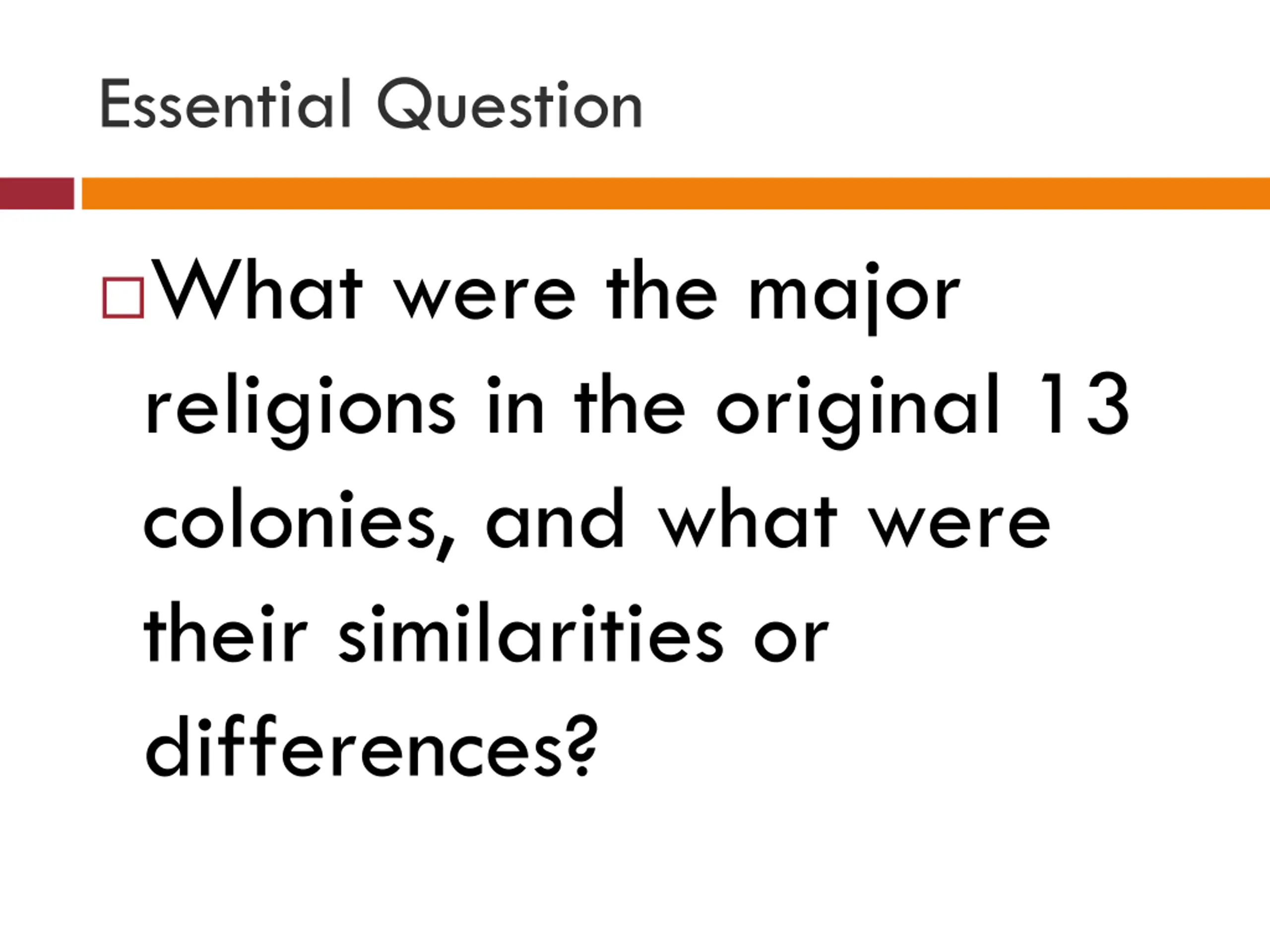 Essential Question What were the major religions in the original 13 colonies, and what were their similarities or differences?