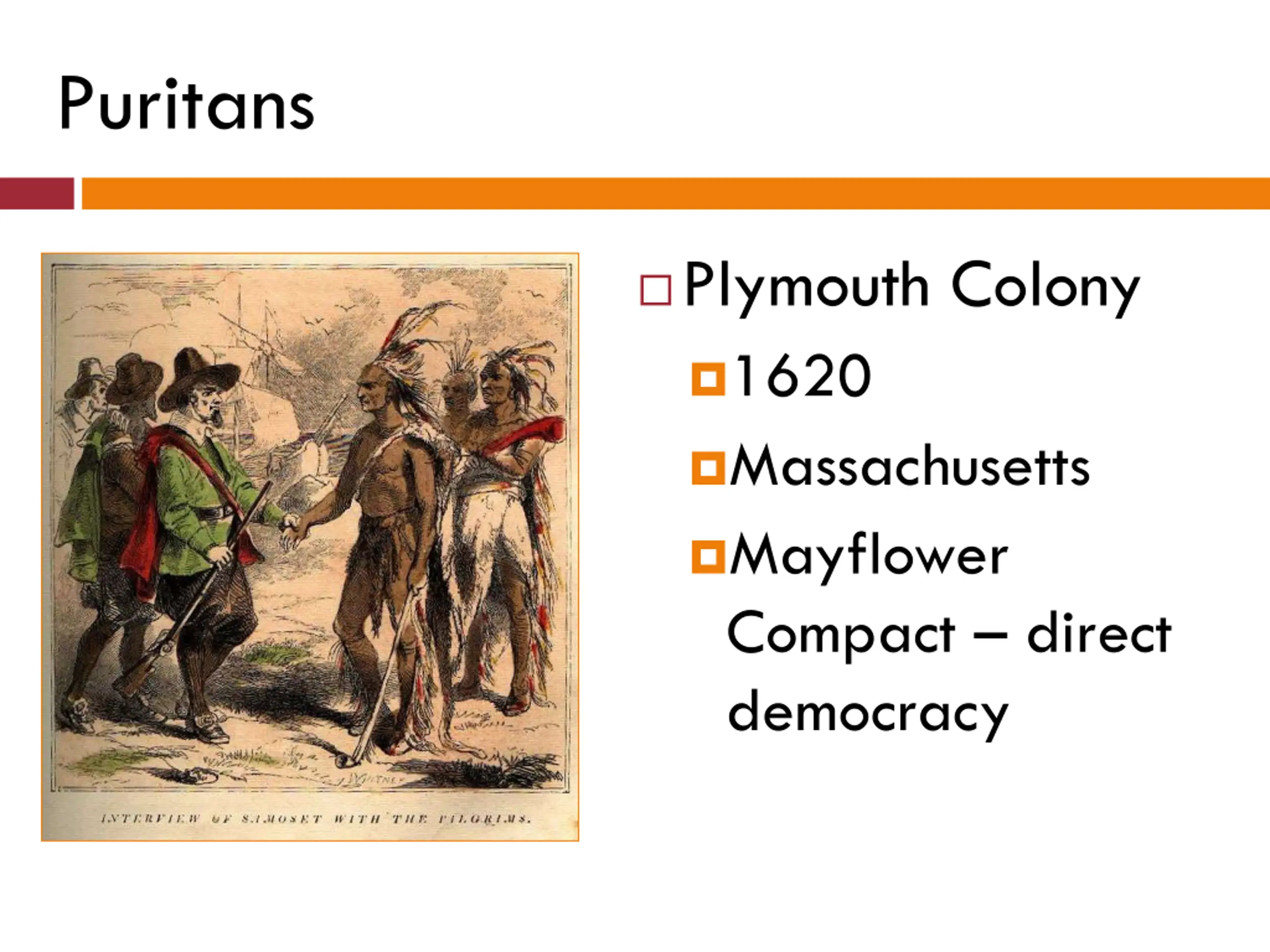 Puritans Plymouth Colony 1620 Massachusetts Mayflower Compact – direct democracy