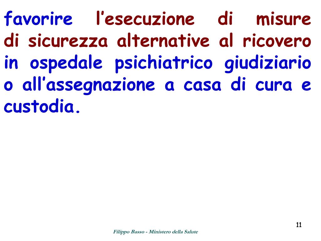 favorire l’esecuzione di misure di sicurezza alternative al ricovero in ospedale psichiatrico giudiziario o all’assegnazione a casa di cura e custodia. 11 Filippo Basso - Ministero della Salute