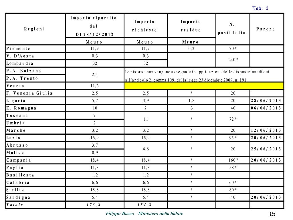 Tab. 1 Filippo Basso - Ministero della Salute 15