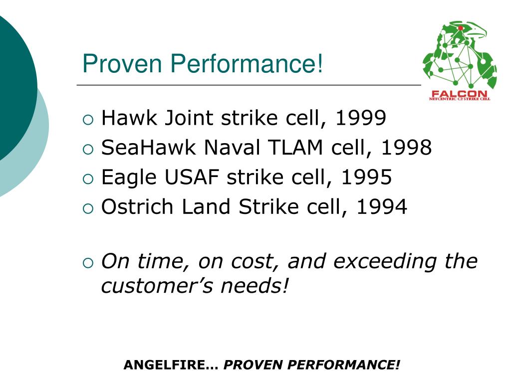 Angelfire Inc. Falcon Strike Cell Presented to Program Office 9 SEP 04 ANGELFIRE… PROVEN PERFORMANCE!