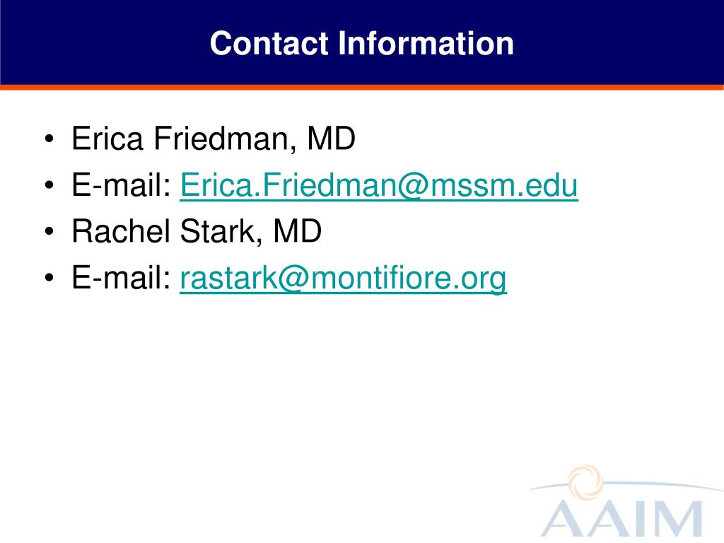 Contact Information • Erica Friedman, MD • E-mail: Erica.Friedman@mssm.edu • Rachel Stark, MD • E-mail: rastark@montifiore.org
