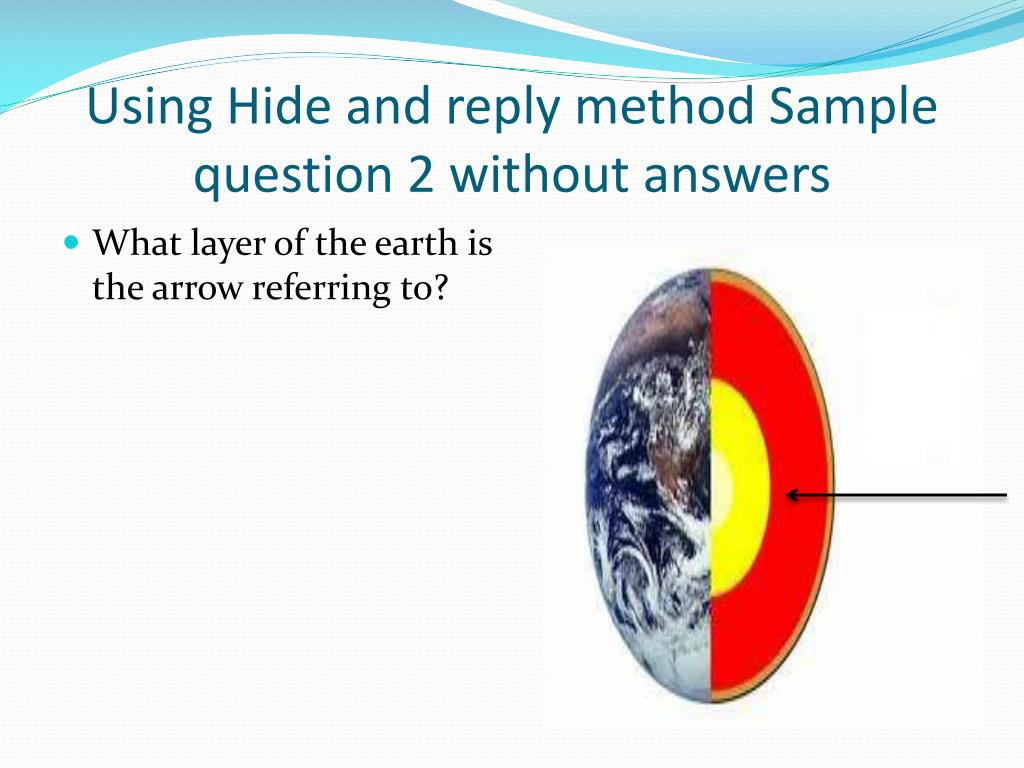 Using Hide and reply method Sample question 2 without answers • What layer of the earth is the arrow referring to?