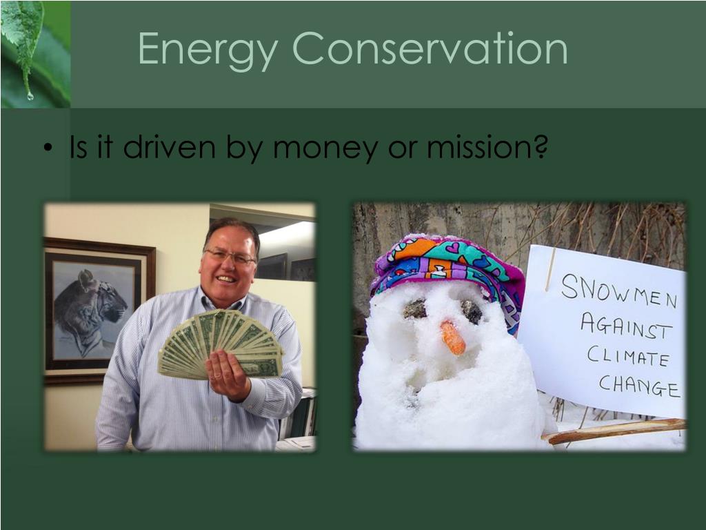 What’s the Deal? What are we doing and why? Reducing energy, resource, and water consumption Increasing use of alternative energy sources, increase diversion from the landfill Board approved policy statement - 2008 Board-level Carbon Neutral/Zero Waste Task Force - 2010