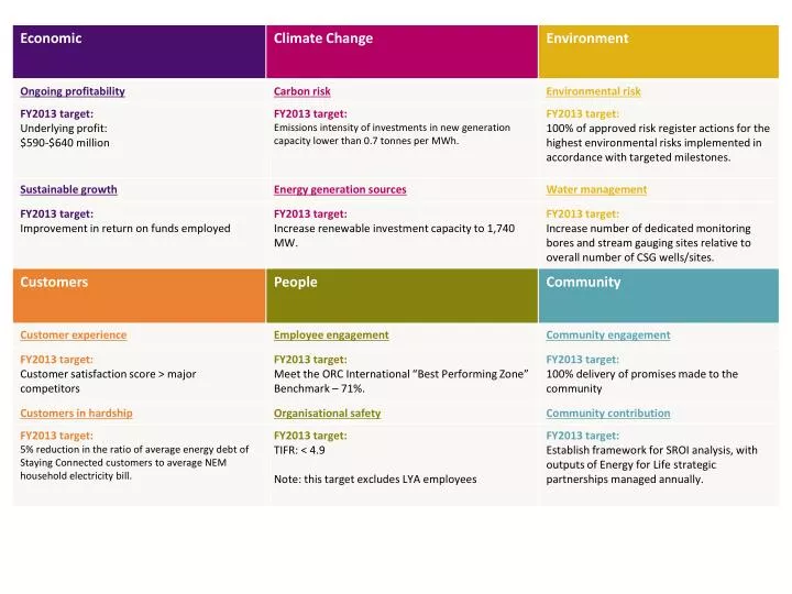 Explore our comprehensive FY13 sustainability blueprint to see how we are committed to growth while prioritizing environmental and social responsibility. This detailed plan outlines our key strategies for sustainable development, resource management, and community engagement. Learn about our innovative initiatives, measurable targets, and progress towards a more sustainable future. Join us in shaping a better world for all.