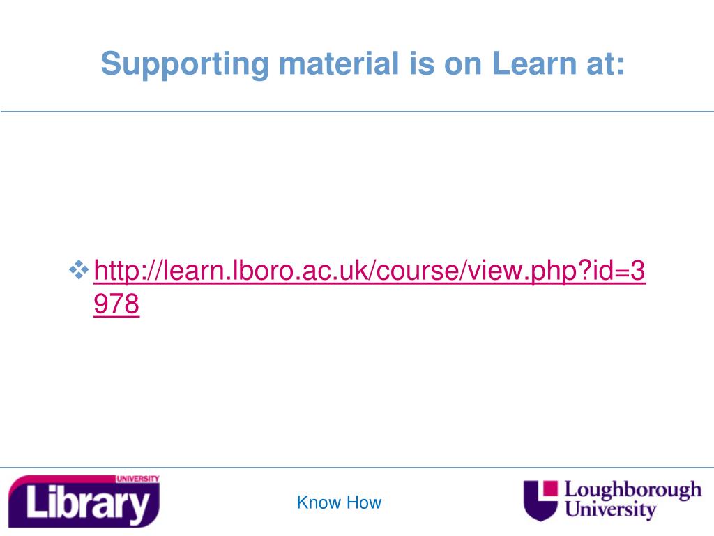 Supporting material is on Learn at: • http://learn.lboro.ac.uk/course/view.php?id=3978