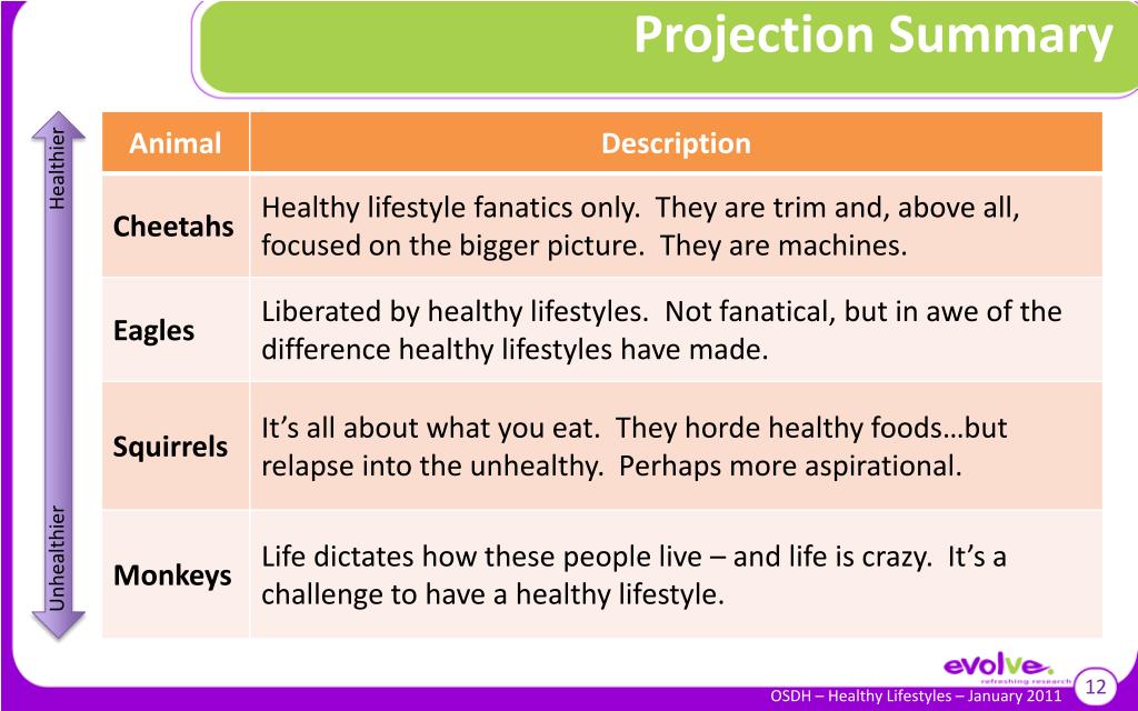 The Projection Exercise “I want you to summarize your attitude to healthy lifestyles as a whole by picking an animal which best symbolizes how you feel.”