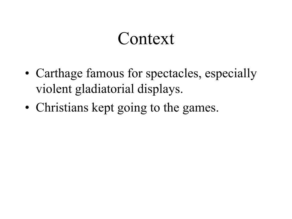Context • Carthage famous for spectacles, especially violent gladiatorial displays. • Christians kept going to the games.