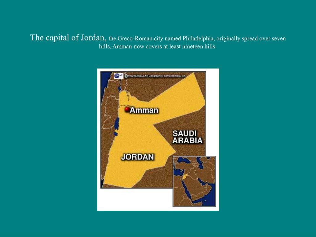 The capital of Jordan, the Greco-Roman city named Philadelphia, originally spread over seven hills, Amman now covers at least nineteen hills.