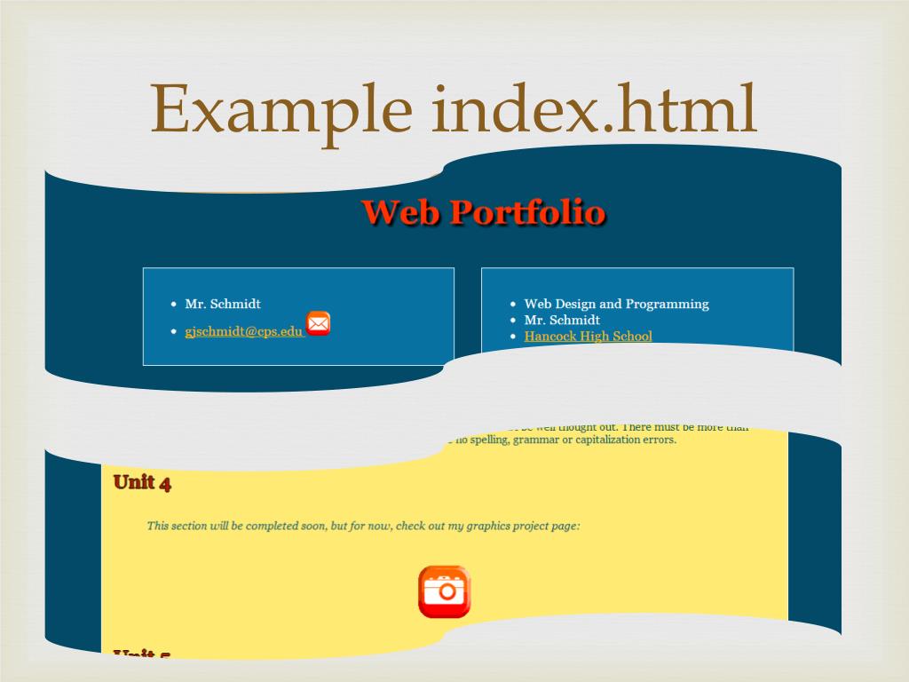 Rest of Today • Download homework 5-9 from the Hancock Web Site. • Finish creating the 2 buttons (mail and camera) • Add the buttons to both your graphics.html file and your index.html file