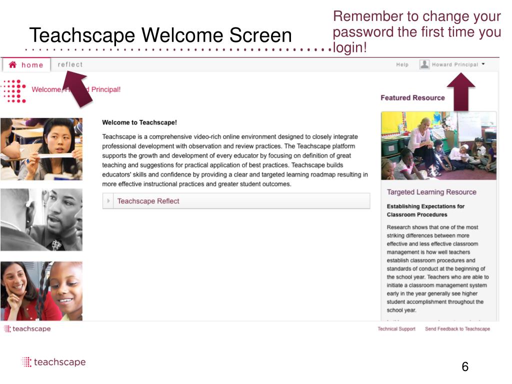 Remember to change your password the first time you login! Teachscape Welcome Screen
