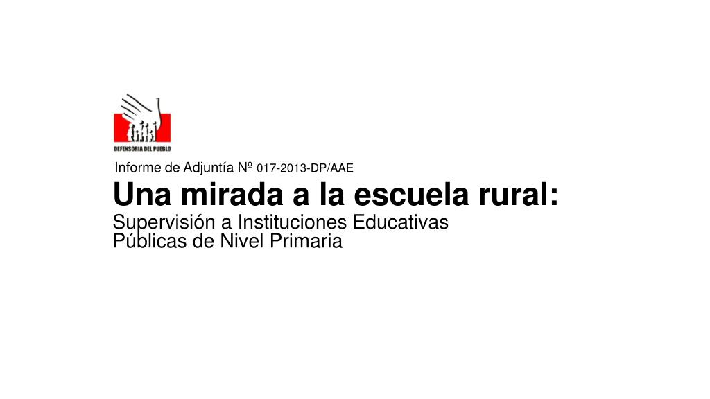 Informe de Adjuntía Nº 017-2013-DP/AAE. Una mirada a la escuela rural:. Supervisión a Instituciones Educativas Públicas de Nivel Primaria. No es posible generalizar las dificultades en el ámbito rural de nuestro país. Si bien se perciben problemas comunes, las causas son diversas.