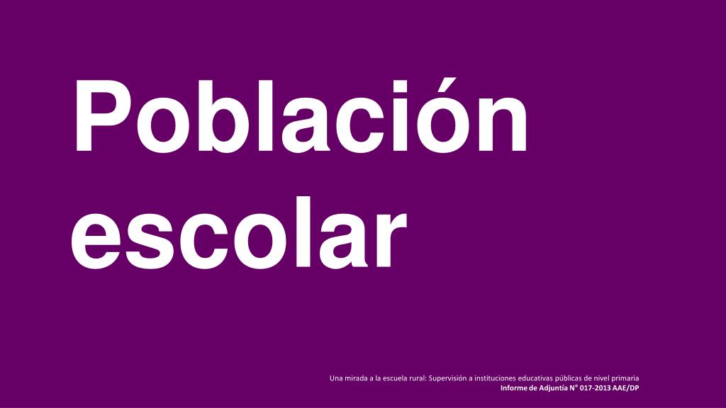 Población escolar Una mirada a la escuela rural: Supervisión a instituciones educativas públicas de nivel primaria Informe de Adjuntía N° 017-2013 AAE/DP