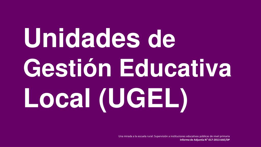 Unidades de Gestión Educativa Local (UGEL) Una mirada a la escuela rural: Supervisión a instituciones educativas públicas de nivel primaria Informe de Adjuntía N° 017-2013 AAE/DP