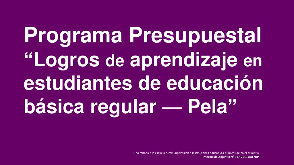 Programa Presupuestal “Logros de aprendizaje en estudiantes de educación básica regular — Pela” Una mirada a la escuela rural: Supervisión a instituciones educativas públicas de nivel primaria Informe de Adjuntía N° 017-2013 AAE/DP