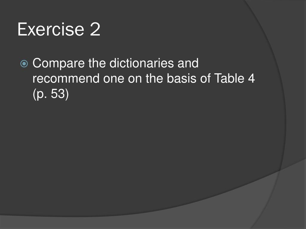 Exercise 2 • Compare the dictionaries and recommend one on the basis of Table 4 (p. 53)