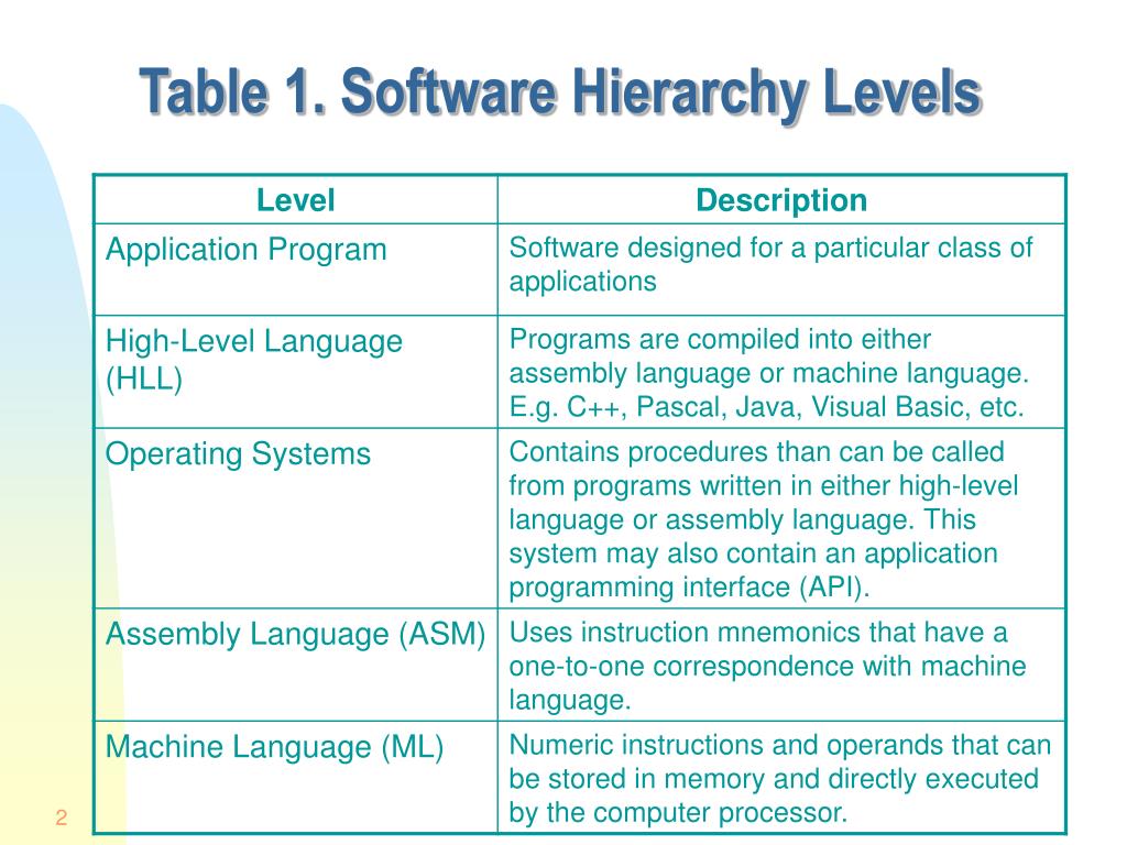 Table 2. Comparison of Assembly Language and High-Level Languages