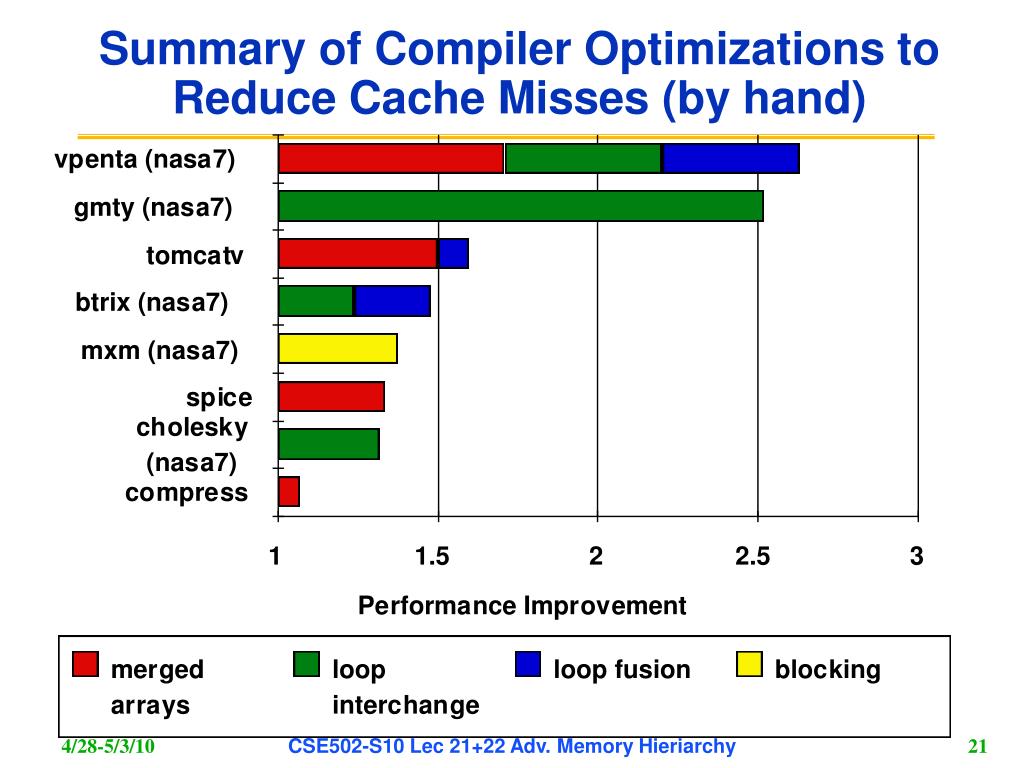 Summary of Compiler Optimizations to Reduce Cache Misses (by hand) CSE502-S10 Lec 21+22 Adv. Memory Hieriarchy