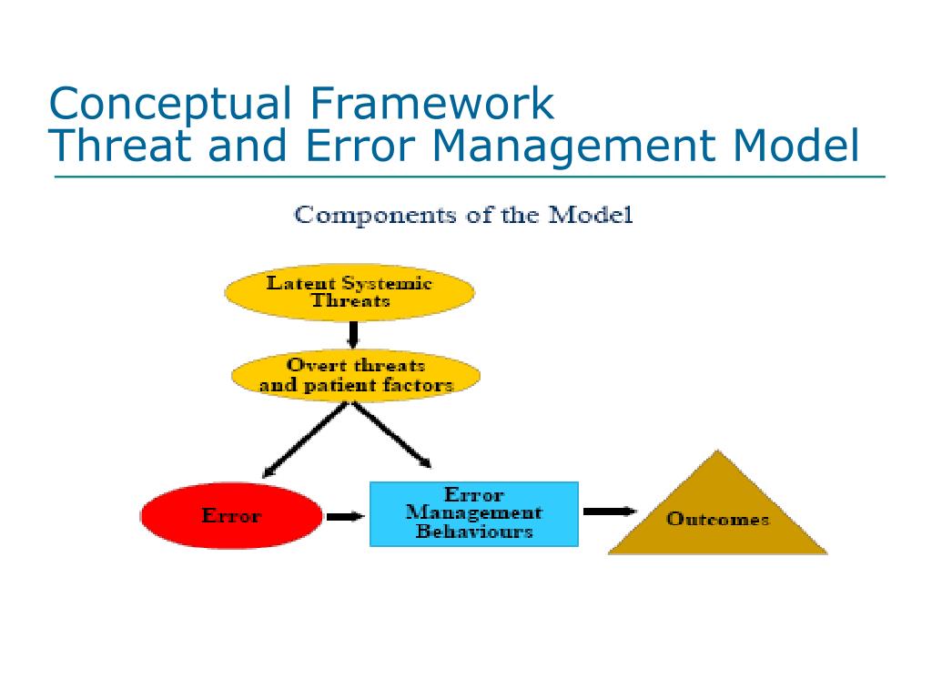 Conceptual FrameworkThreat and Error Management Model • Developed by Robert Helmreich • Created and researched within the context of the aviation industry • Recognized by the IOM for applicability to health care and is currently being tested