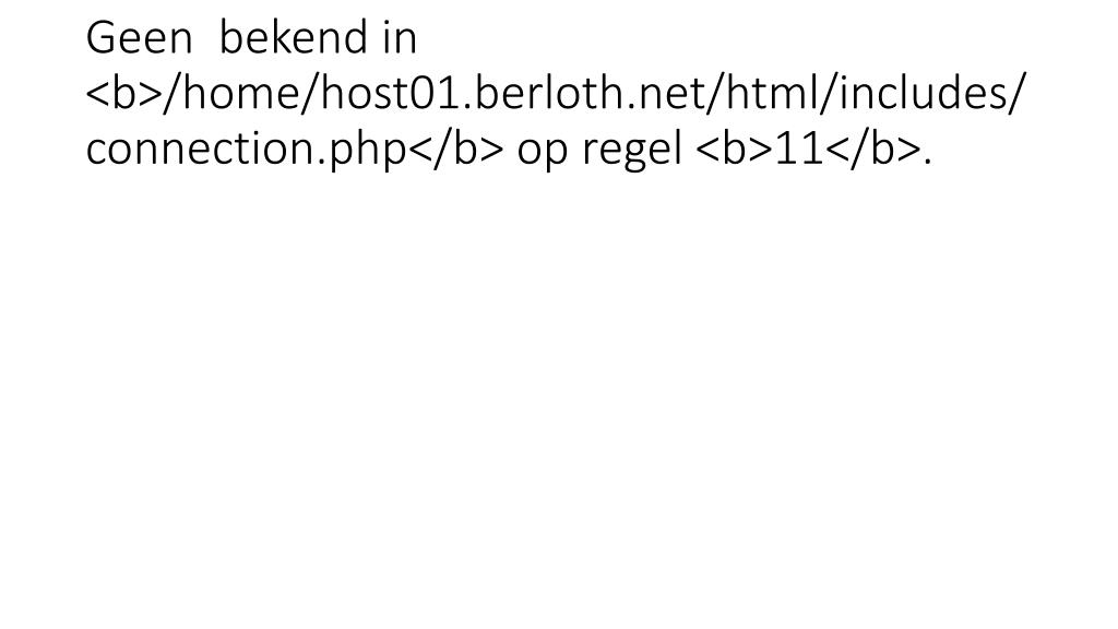 1. Geen bekend in <b>/home/host01.berloth.net/html/includes/connection.php</b> op regel <b>11</b>.