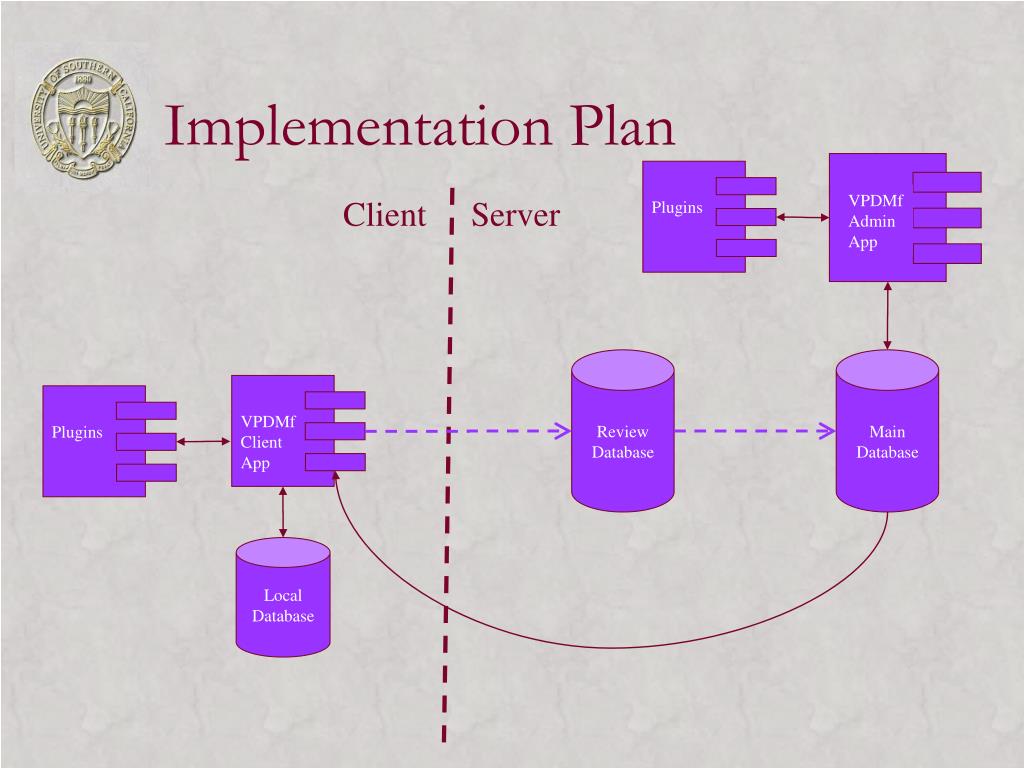 VPDMf Admin App Plugins Plugins VPDMf Client App Implementation Plan Client Server Review Database Main Database Demonstration Local Database