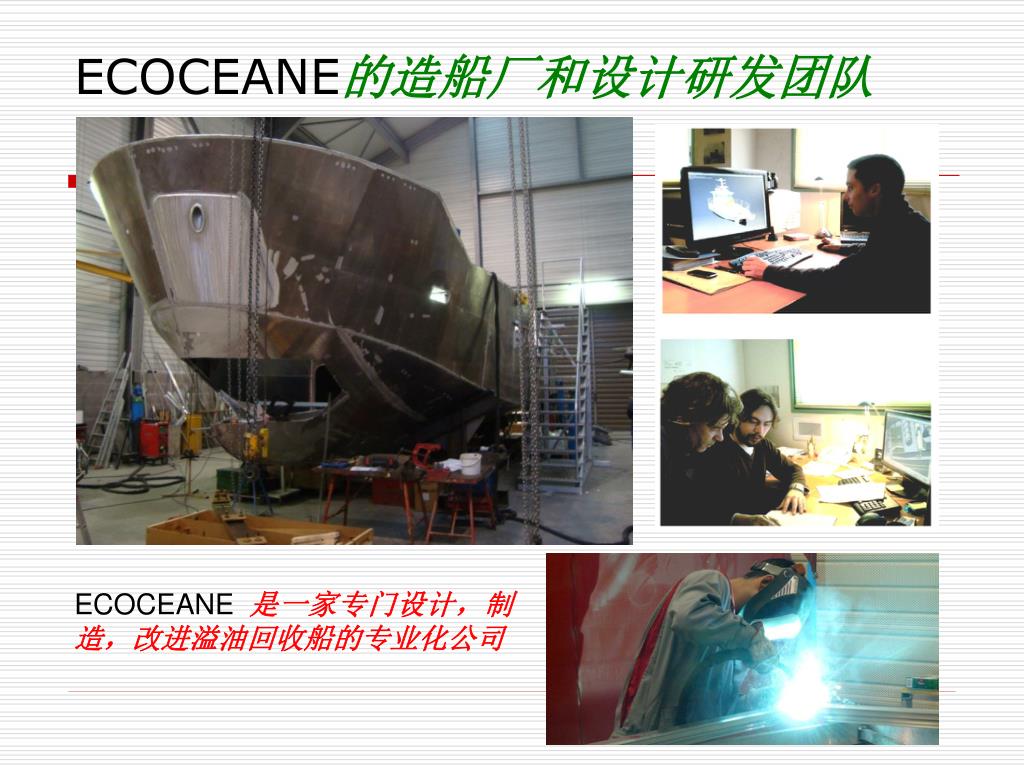 ECOCEANE的造船厂和设计研发团队 ECOCEANE是一家专门设计,制造,改进溢油回收船的专业化公司