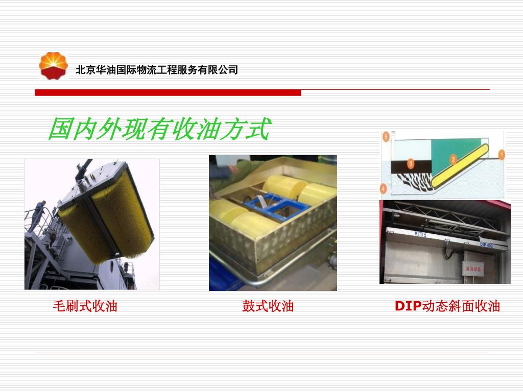 北京华油国际物流工程服务有限公司 国内外现有收油方式 毛刷式收油 鼓式收油 DIP动态斜面收油