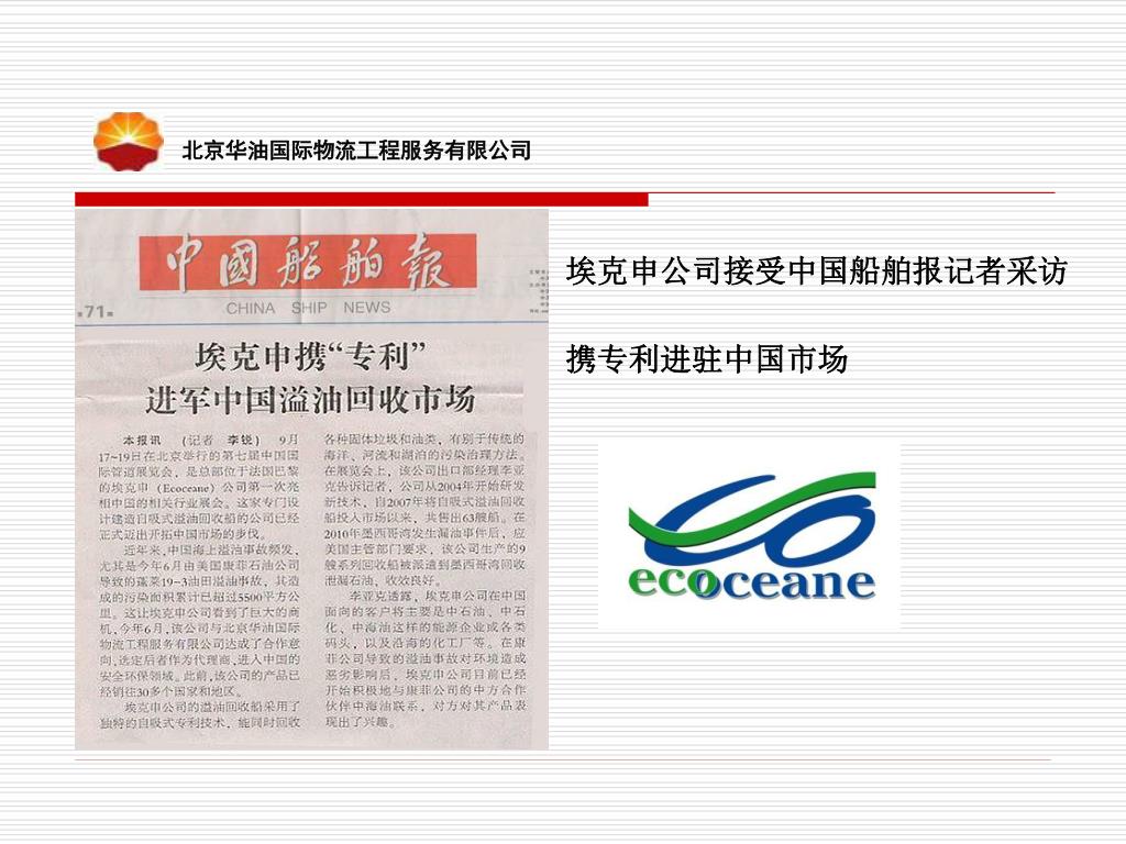 北京华油国际物流工程服务有限公司 埃克申公司接受中国船舶报记者采访 携专利进驻中国市场